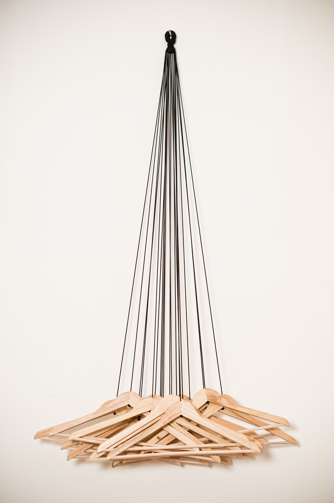 20 appendiabiti in legno appesi con altrettante corde ad un’unico anello!