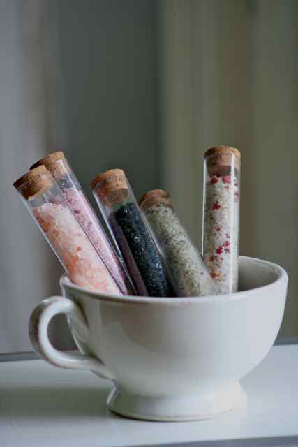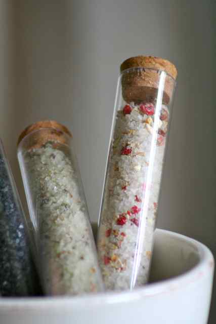 Sali marini miscelati con spezie esotiche, erbe ed alghe, fiori e frutta allo scopo di creare abbinamenti piacevoli al gusto e alla decorazione dei nostri piatti.